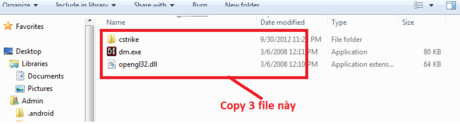 Bước 4: Copy 3 file kia rồi vào ổ C:\Games\CS11 vào phần thư mục cài đặt của CS 1 rồi dán vào đó (Chú ý chọn ghi đè nhé . Click làm như phần khung đỏ ở ảnh dưới. Mình làm trên win 7 nhé, win xp thì bạn cứ ghi đè lên là ok)
