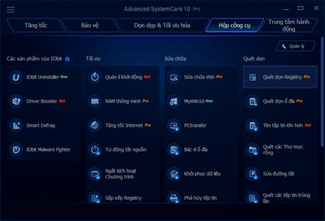 iObit, Diệt virus, Advanced SystemCare, Tối ưu máy tính, Sửa lỗi win, cây bản quyến, rọn dẹp rác,
