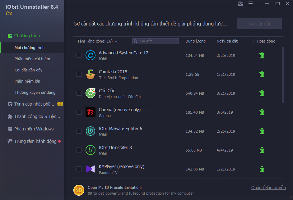 Các tính năng chính của IObit Uninstaller Pro