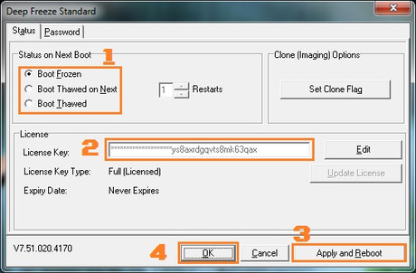 Nếu muốn thay đổi bất kì trong chế độ bóng băng của Deep Freeze bạn cần phải nhập vào chính xác mật khẩu bảo vệ.