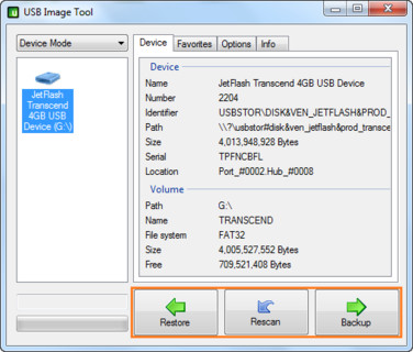 Bước 4: tương tự, để phục hồi bản sao đã lưu vào Flash USB, bạn chọn Device Mode, bấm vào nút Restore duyệt đến tập tin hình ảnh mà bạn đã lưu trước đó và cuối cùng nhấn nút Open để bắt đầu khôi phục lại hình ảnh sao lưu vào Flash USB.